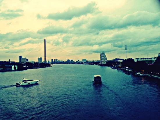 시원한 강바람을 맞으며 짜오프라야 강에서 바라보는 방콕의 야경.