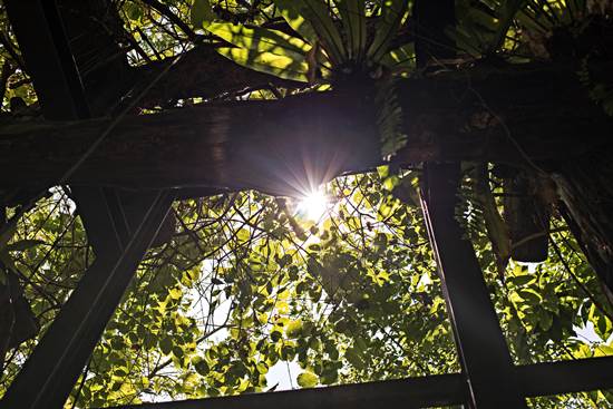 강렬한 태양을 야자수 잎이 막아주면서 햇볕이 예쁘게 비친다.