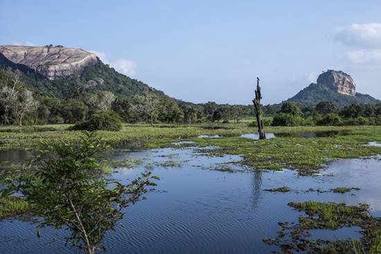 울창한 숲 한가운데에 시기리야 바위만 홀로 우뚝 서있는 모습이 위엄 있다.
